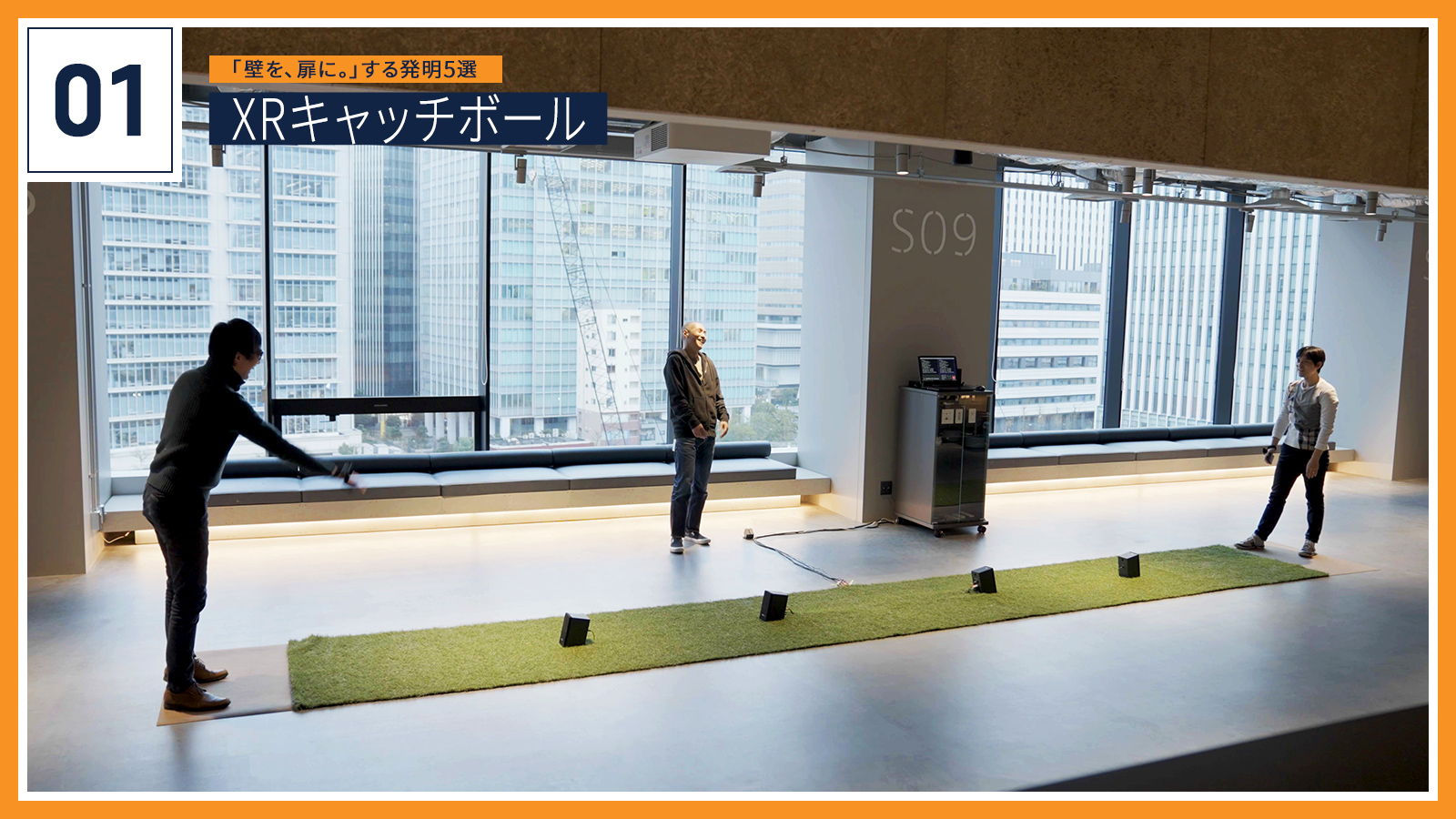 まず1つ目に選んだのは、「XRキャッチボール」(※)。視覚障がいのある父親が息子からキャッチボールをせがまれたというエピソードから生まれた「音でできるキャッチボール」です。投げるのはボールではなく、音を鳴らしながら移動する仮想のボール。手からそのボールを放つと、3つの音を鳴らしながら相手の方へボールが飛んでいきます。その音とリズムをもとにタイミングよくボールを取れればキャッチ成功です。「目が見えないとキャッチボールができない」という「壁」を、ボールの定義を変えることで「扉」にした発明と言えるでしょう。むしろ本物のボールでは不可能な魔球を投げられるかも?