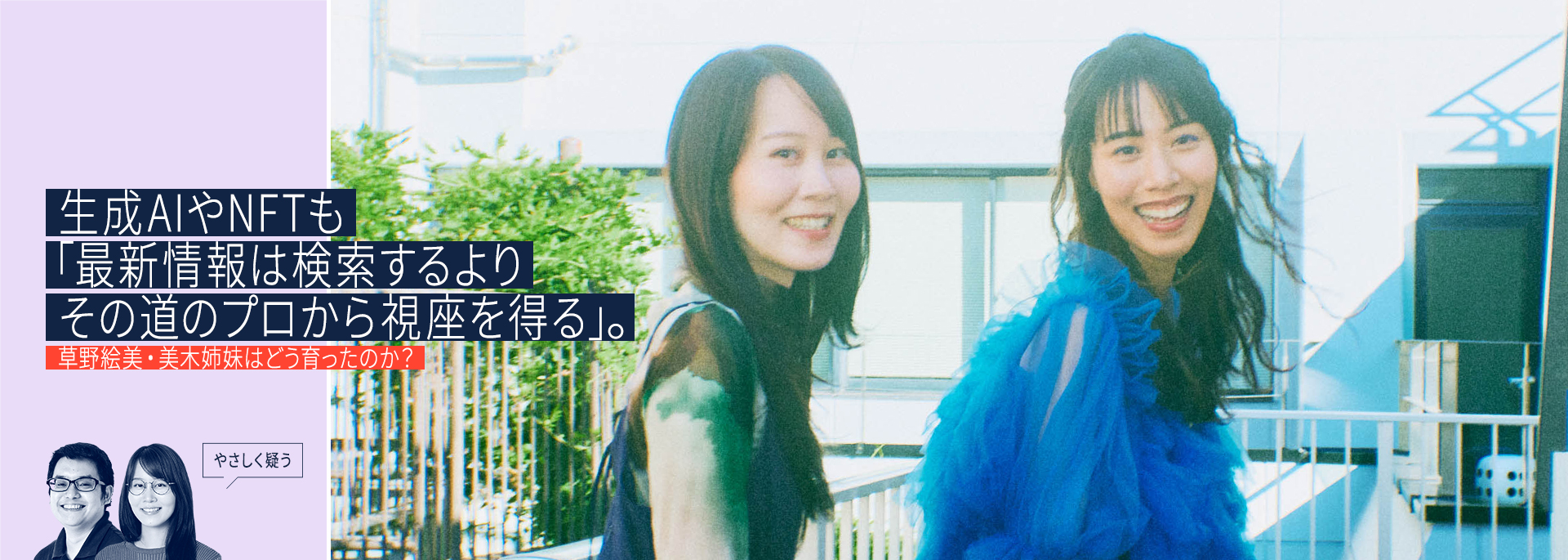 草野美木さん(以下、美木) 絵美ちゃん、久しぶり……でもないか(笑)。連絡はよく取ってるし、この前はお母さんと3人で(ポルトガルの)リスボンに一緒に行ったね。旅行中、二人でデジタル系のビジネスをやるとしたら何がいいかなって、ブレストというか妄想を繰り広げて。