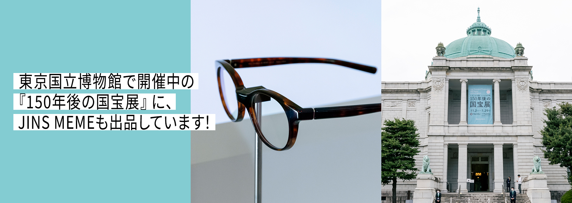 僭越ながら、ここにJINSも「150年後に残したいお宝」として、JINS MEMEというメガネ型ウエアラブルデバイスを出品させていただきました。