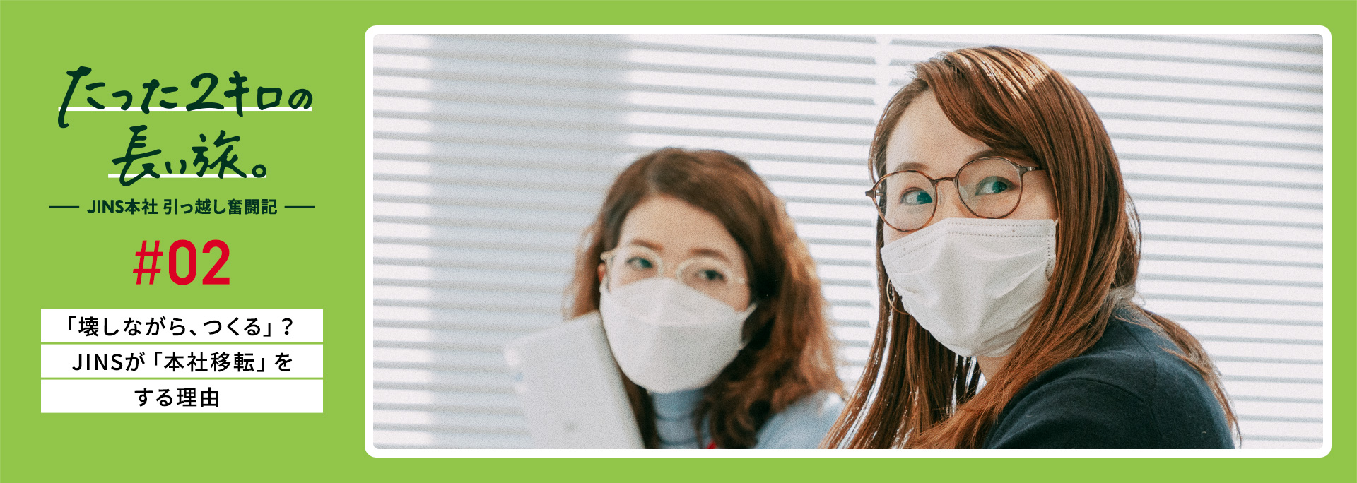 人事さいちゃん 「壊しながら、つくる」は建物だけじゃなく、働き方もそのひとつです。リモートワークが定着したいま、働き方を考え直そうとする気運も高まっています。ここであらためてJINSらしい働き方をつくりたいですね。