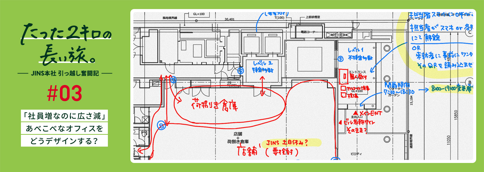設計はぎさん そもそも、移転後も「出社3割」でいいのか悩ましくないですか? これからのJINSの働き方として、もしかしたら5割を目指すべきかもしれないし。