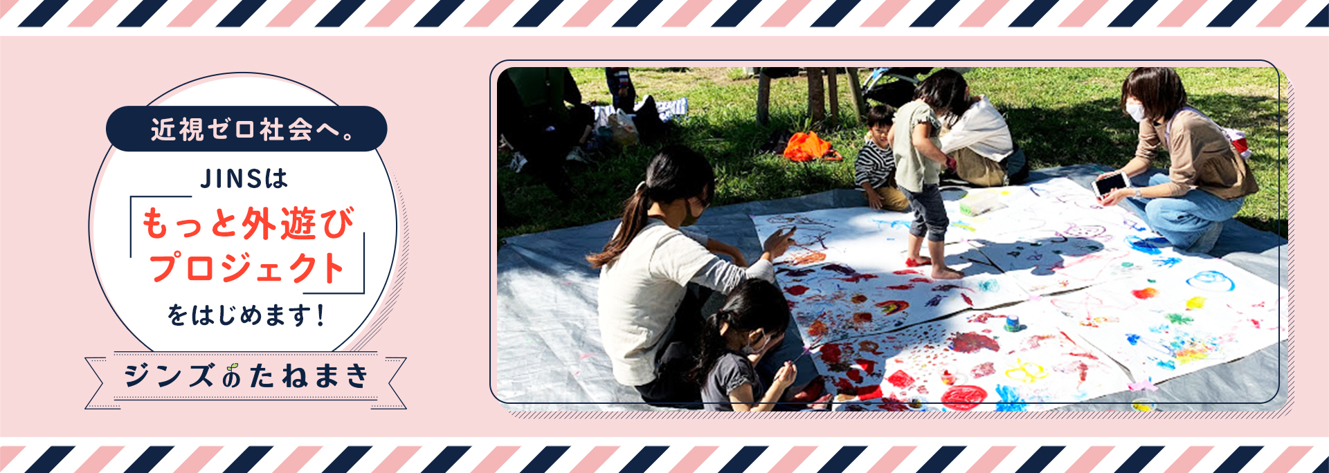 「近視ゼロ社会」を掲げるJINSとして、子どもたちの近視の増加は、無視することのできない大きな問題です。直接支援できる範囲はせまくとも、活動を通して外遊びの大切さを広く社会に伝えられたら、日常生活における近視進行抑制を促すことにもつながるはず。